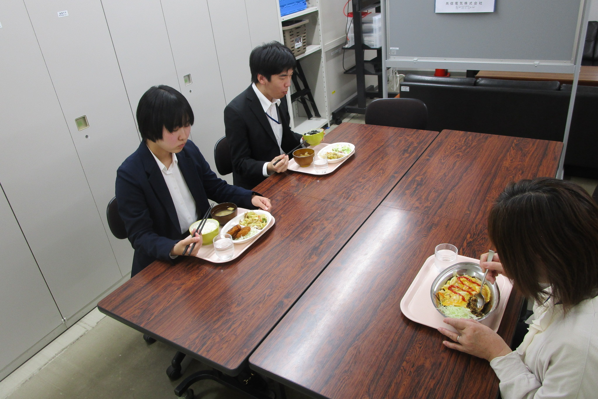 昼食会議室や庁舎内の食堂で職場の仲間と一緒に食事をすることが多いです。十分に休憩をとり、午後からの業務に備えます。 -
