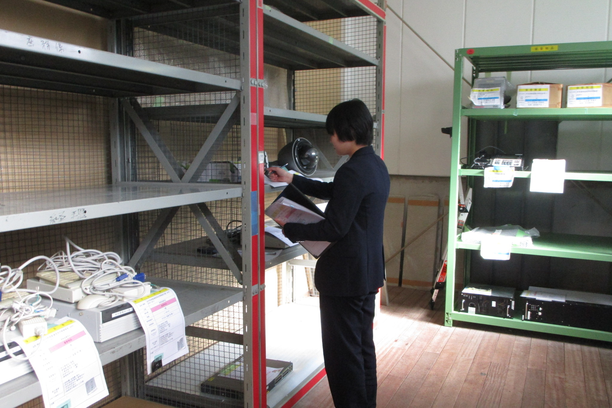 物品点検倉庫に行き、保管している物品の点検を行います。 -